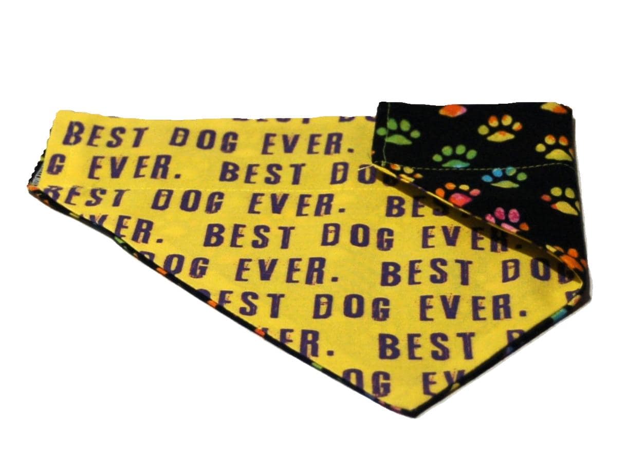 A stylish and functional dog bandana that easily slides onto your pet’s collar. Made from high-quality, durable fabric, this bandana is designed to stay in place without the need for tying. It features a convenient opening that allows you to slip it over the collar, ensuring a secure and comfortable fit for your furry friend. Perfect for adding a touch of flair to your dog’s everyday look or for special occasions. Bandanas are reversible, giving your dog two styles in one.