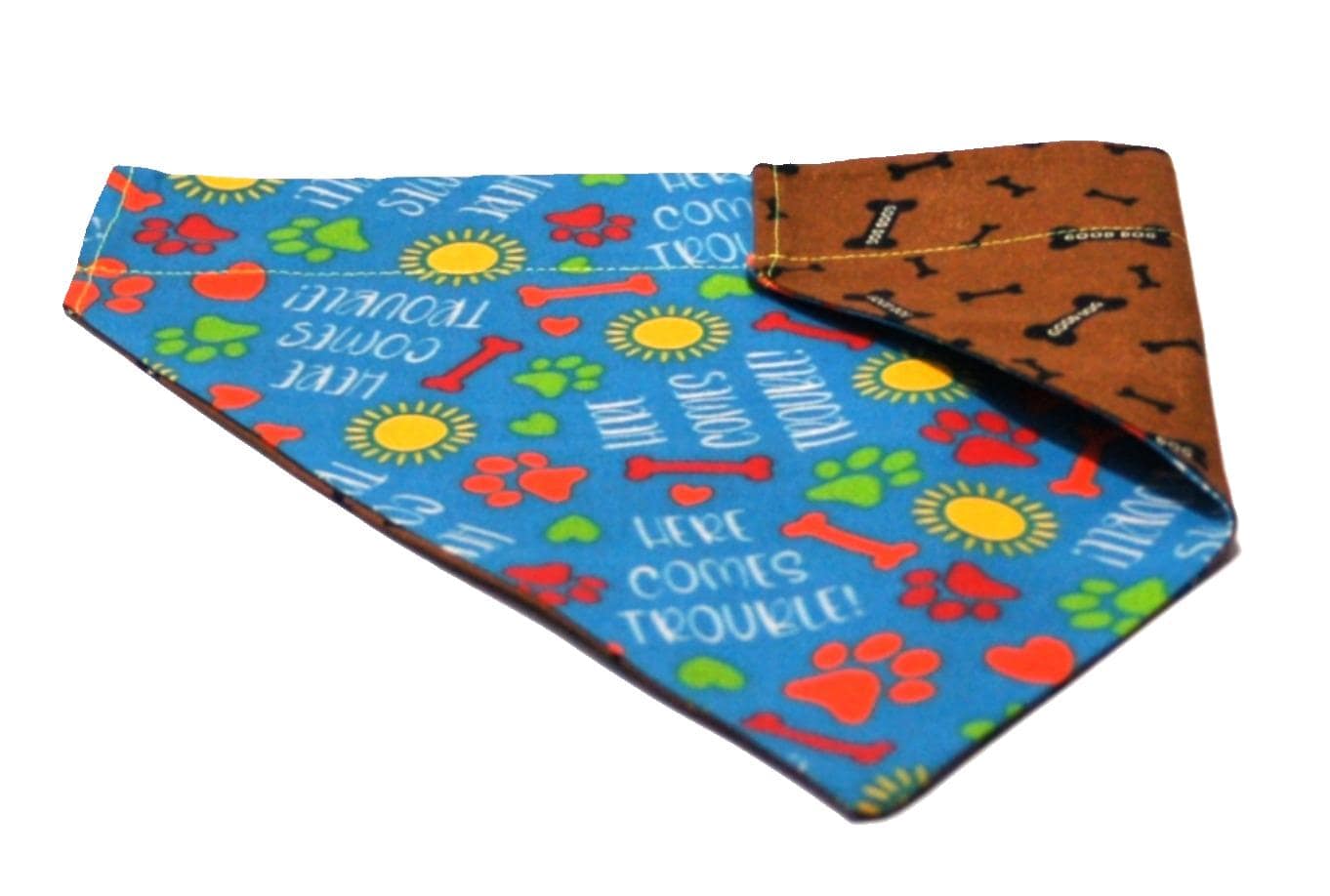 A stylish and functional dog bandana that easily slides onto your pet’s collar. Made from high-quality, durable fabric, this bandana is designed to stay in place without the need for tying. It features a convenient opening that allows you to slip it over the collar, ensuring a secure and comfortable fit for your furry friend. Perfect for adding a touch of flair to your dog’s everyday look or for special occasions. Bandanas are reversible, giving your dog two styles in one.