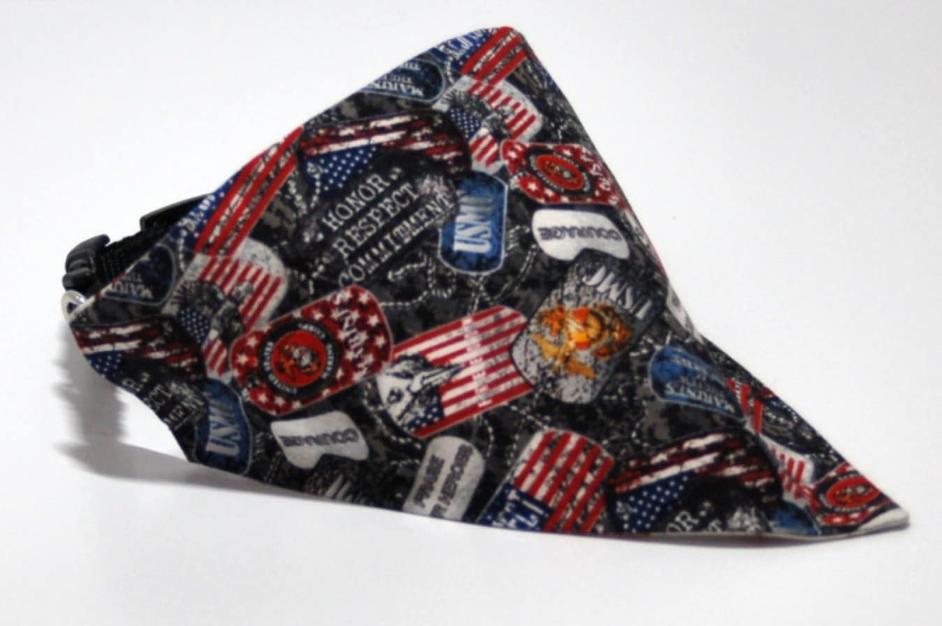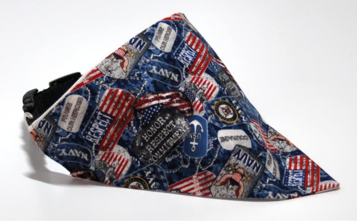 A stylish and functional dog bandana that easily slides onto your pet’s collar. Made from high-quality, durable fabric, this bandana is designed to stay in place without the need for tying. It features a convenient opening that allows you to slip it over the collar, ensuring a secure and comfortable fit for your furry friend. Perfect for adding a touch of flair to your dog’s everyday look or for special occasions. Bandanas are reversible, giving your dog two styles in one.
