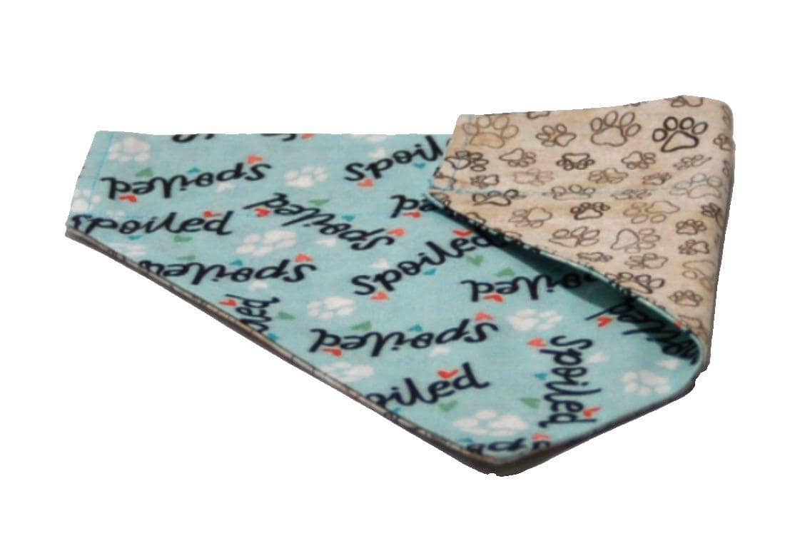A stylish and functional dog bandana that easily slides onto your pet’s collar. Made from high-quality, durable fabric, this bandana is designed to stay in place without the need for tying. It features a convenient opening that allows you to slip it over the collar, ensuring a secure and comfortable fit for your furry friend. Perfect for adding a touch of flair to your dog’s everyday look or for special occasions. Bandanas are reversible, giving your dog two styles in one.
